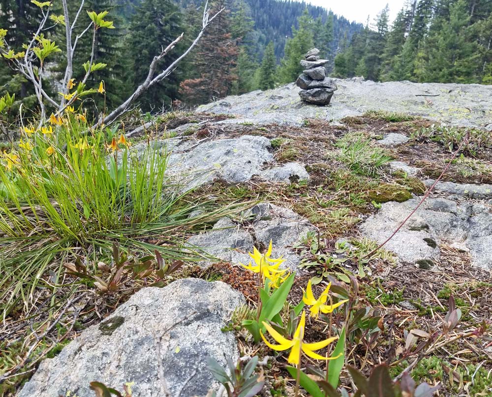 When it comes to cairns, the ardent leave-no-tracers argue that by moving a rock you’re disturbing the bugs living under it and changing the topography of that piece of ground, even if minimally. Absolutely true. That’s also true of the shoes we wear on our feet as we travel down the trail, the tires of our dirt or mountain bikes or ATVs, the hooves of our horses. Bugs, rocks, sticks, branches, downed trees, all get shifted, moved or trampled on when we venture into nature, whether on or off trail. Wildlife gets spooked. In fact, of all the trail users I see here in Idaho, it is the horse riders, dirt and mountain bikers and ATV/side-by-side drivers that do the most damage. In their defense, those user groups also perform most of the back-country rescues of lost or injured visitors, and volunteer to do a lot of trail work, repairing the damage they cause, maintaining existing trails and helping build new ones. It balances out, at least here in sparsely-populated central Idaho. (Although that’s changing with increased motorized uses by tourists, most on ATVs and side-by-sides. They use – and often damage – the trails and back-country roads and then go home. The Forest Service budget for trail and road maintenance is too small to keep up and the volunteer groups or programs like the Idaho Conservation Corps can’t take up all the slack.)
