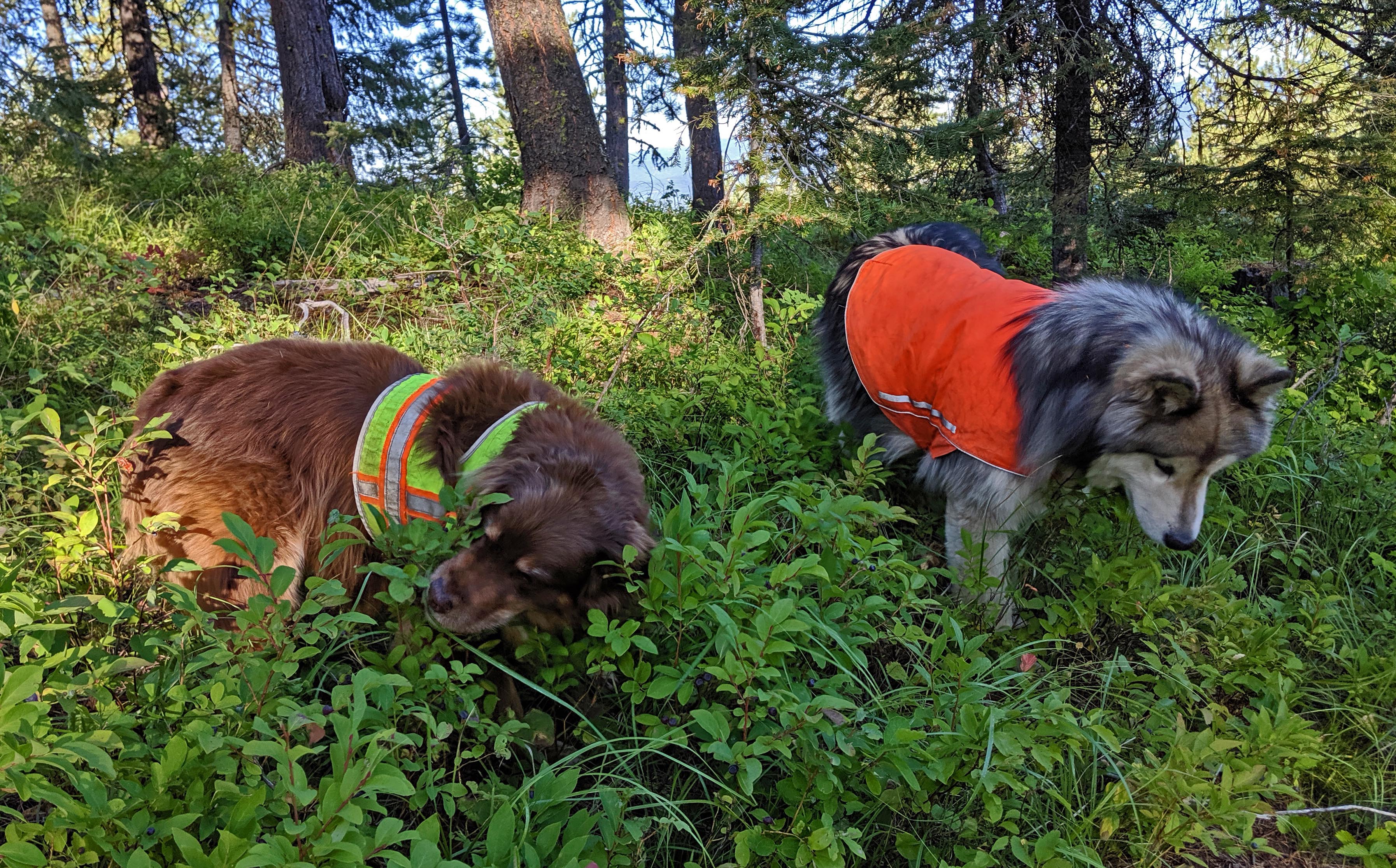 The boys picking huckleberries from the shrubs.