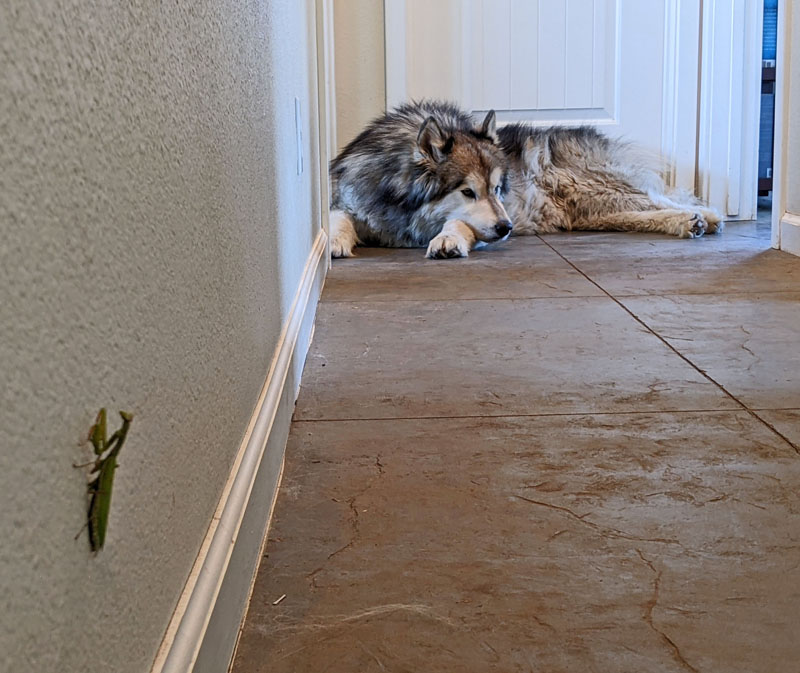Now I can add a praying mantis to the list of uninvited guests inside the house.