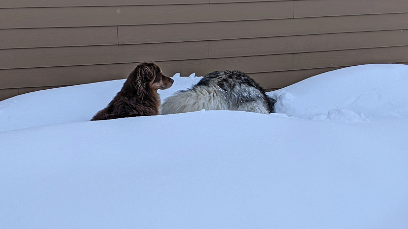 What a great story. And wow that’s a lot of snow. We’ve had a fair bit lately too, but not like what you’ve gotten. Great pics and love those doggies’ personalities. The analogy of the construction worker fit perfectly. 😆