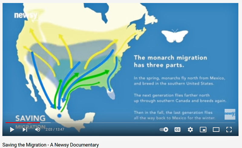 The Monarch’s migration is divided into three parts. This graphic – taken as a screenshot from a video mentioned at the end of this blog – describes it better than I can.