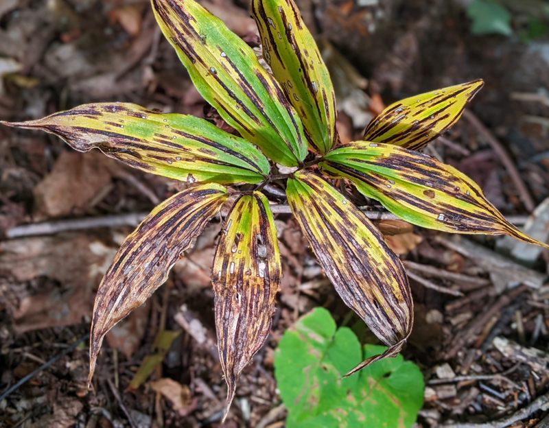 After letting the boys cool their toes and get a drink on one of the ponds, we started to head home. We took a path alongside a long swath of woods about 30 feet wide between two big fields. There are lots of tall maples providing shade for woodland plants and wildflowers.